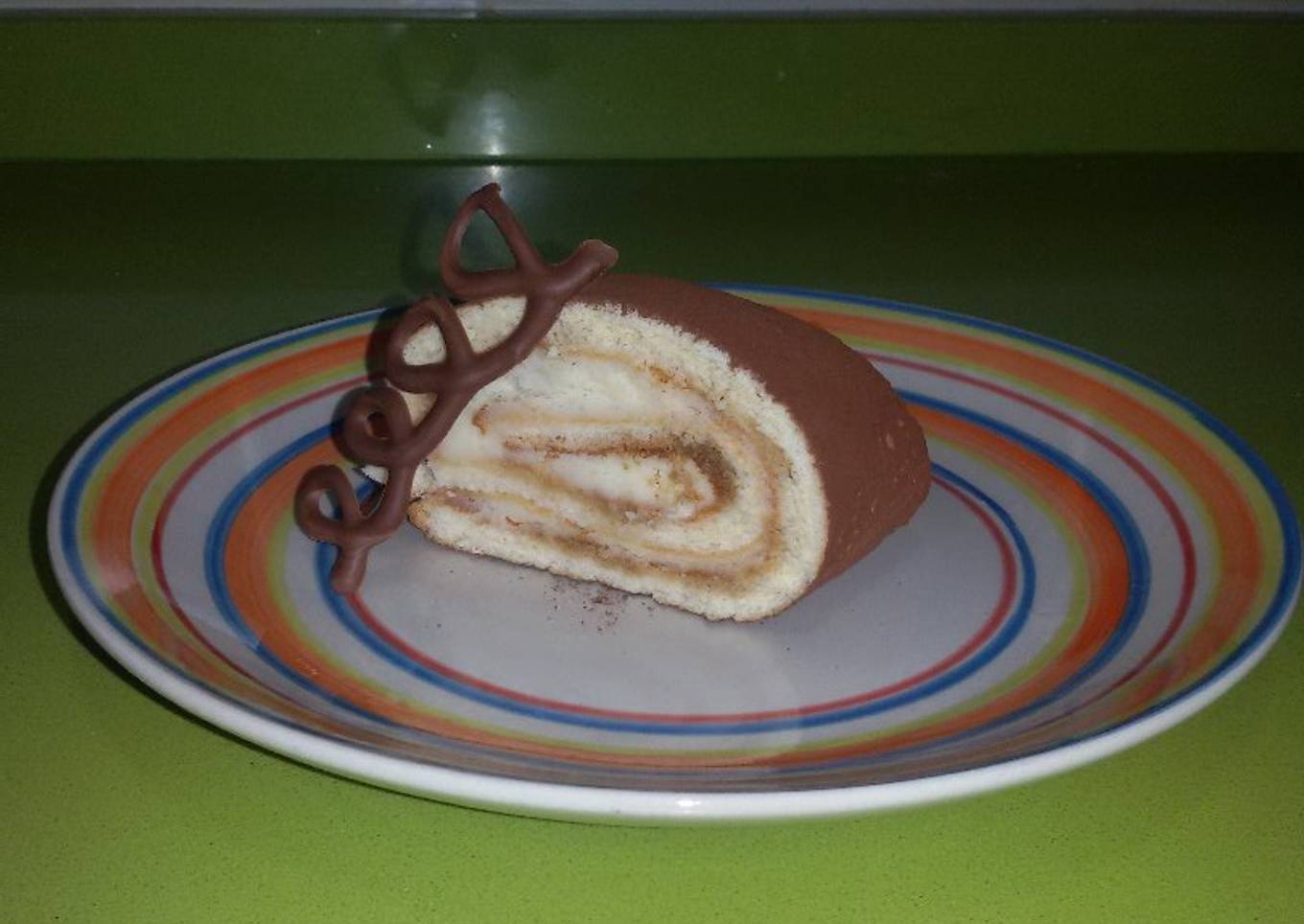 - Ahora ya montamos el rollo, sobre la masa ya fría pincelamos con el café mezclado con agua, extendemos la crema de mascarpone sin llegar a los bordes y enrollamos con cuidado.