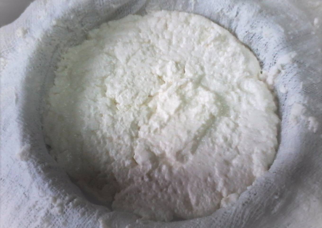 - Dejamos escurrir unos 10', cerramos el pa帽o o gasa con una pinza haciendo una bola y vamos presionando con las manos para que escurra m谩s cantidad de suero. Ponemos un peso encima y reservamos una media hora en la nevera. Durante ese tiempo a煤n ir谩 cayendo suero.