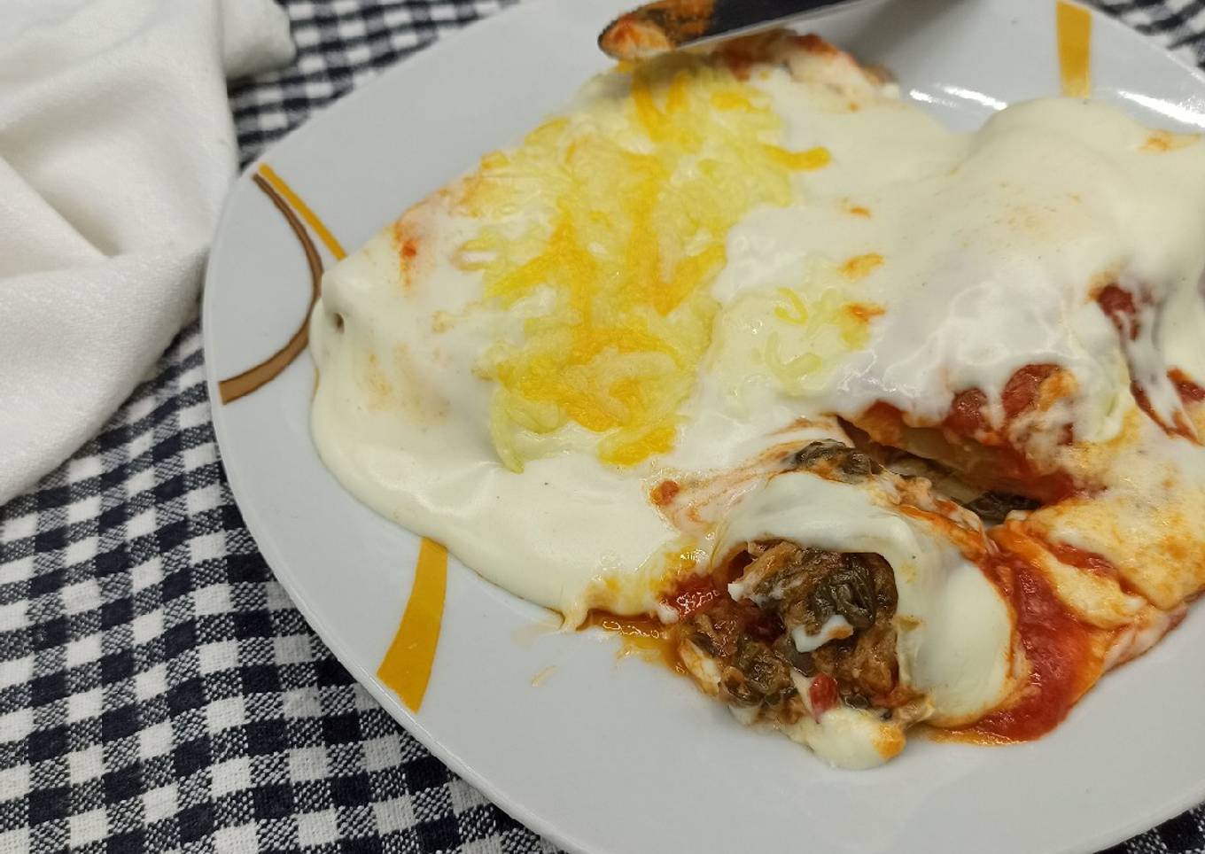 As for the number of servings that can be served to make Canelones de espinacas y setas variadas con atún is 24 raciones. So make sure this portion is enough to serve for yourself and your beloved family.