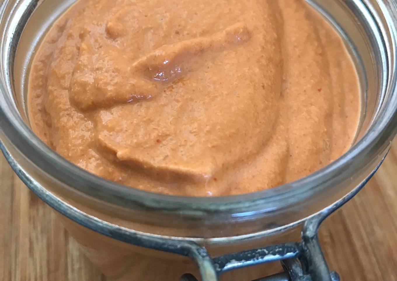 - Pasar ya todo con el aceite por la minipimer, licuadora o thermomix para hacer la salsa o pesto. Salpimentar al gusto. Quedará siempre un poco dulzón por el pimiento rojo.